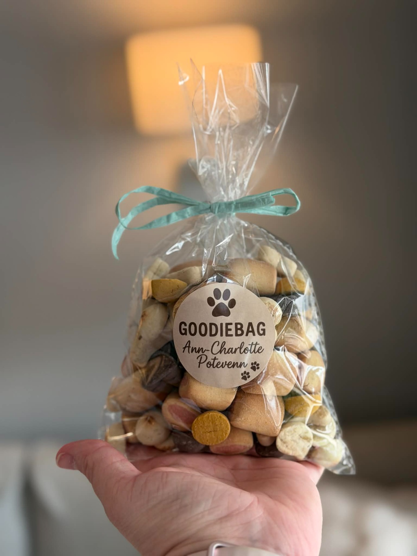 Potevenn Goodiebag inneholder en smakfull blanding av sprø vaniljekjeks og margkjeks, perfekt som en liten belønning på tur, etter trening eller bare litt ekstra kos i hverdagen.